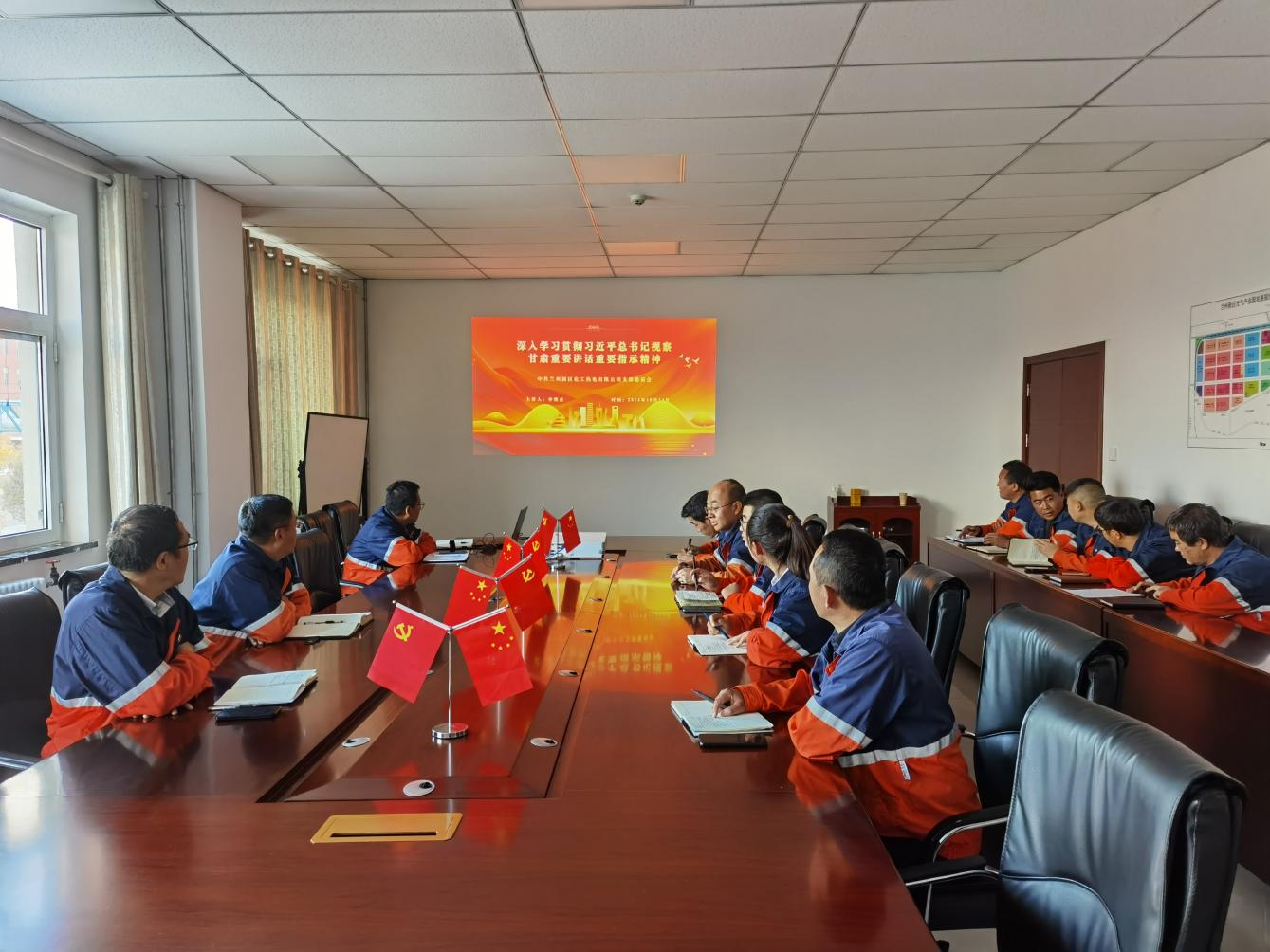 10月14日下午,兰州新区化工热电有限公司在第一会议室组织召开专题学习会议,深入学习贯彻习近平总书记视察甘肃重要讲话和指示精神,热电公司支部副书记、副总经理李在健主持会议,支部书记、总经理仲继业出席会议并讲话。