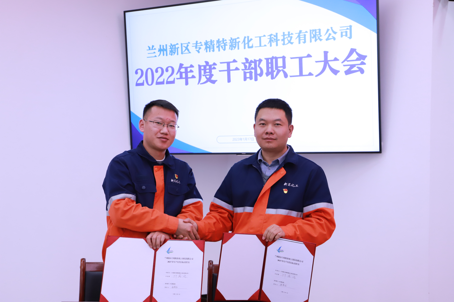 会上,专精特新公司副总经理裴绍鹏传达了集团公司一届三次职工代表大会会议精神。集团公司副总经理、专精特新公司总经理叶得强作了专精特新公司《2022年工作报告》。报告系统回顾了2022年公司取得的成绩、存在的问题与不足,安排部署了2023年工作。随后,叶得强与相关部门负责人签订了2023年度经营目标责任书。会上还表彰奖励了2022年为公司项目建设、生产运营做出积极贡献的优秀部门和先进个人。