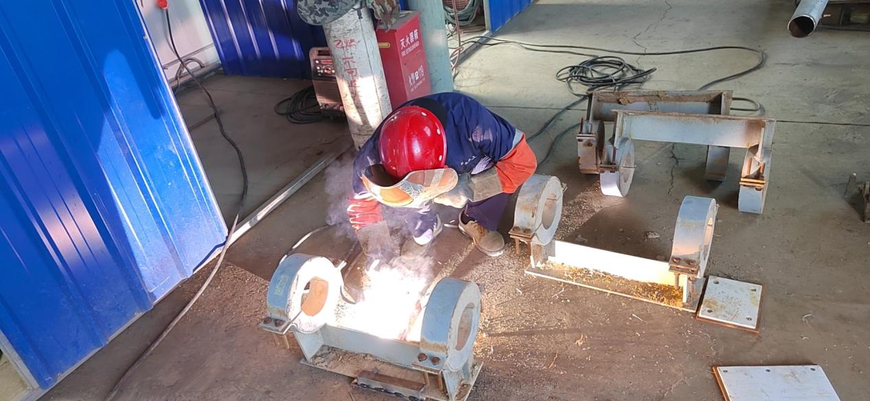 紫东药业蒸汽入户管托预制焊接