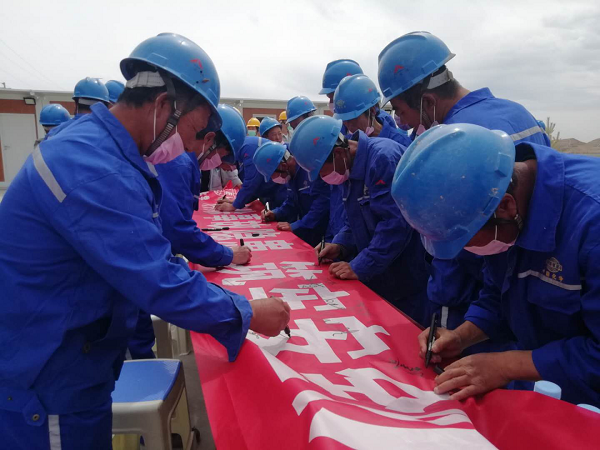 随后,参加此次启动仪式的全体人员在印有本次活动主题“消除隐患事故,筑牢安全防线”的条幅了郑重签名,做出安全承诺。