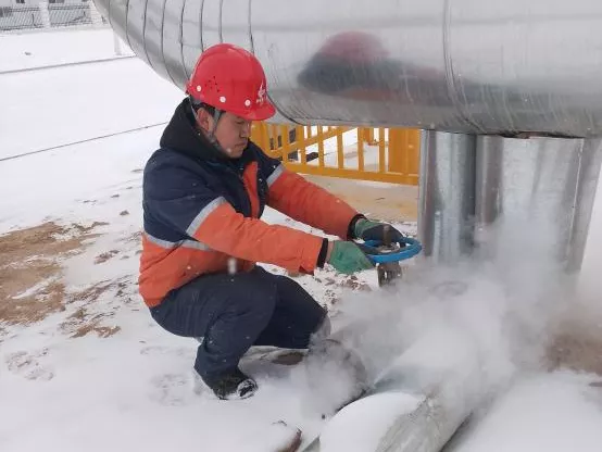在极端严寒天气,为防止因低温而引发的隐患故障,外网运行部认真巡检热力管网及疏水阀、消防站防寒防冻措施和化热站,监视运行状态,对有问题的设备及时进行保温防冻工作,在严寒中将化工热电公司的“热汽”输送到园区各处,保障个园区各企业的正常生产。