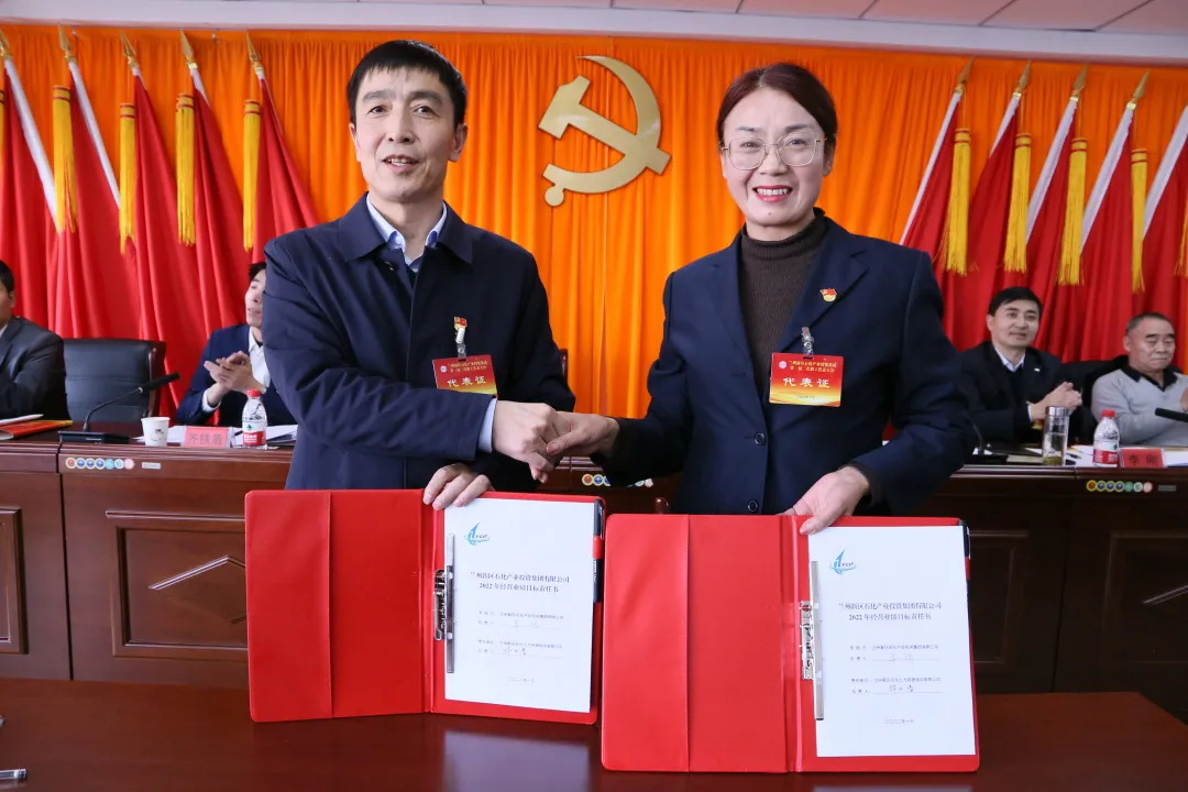 会议通报了2021年生产经营及安全环保情况,集团党委副书记、总经理姜锦同志与各子公司负责人签订2022年《经营业绩目标责任书》及《安全环保目标责任书》。