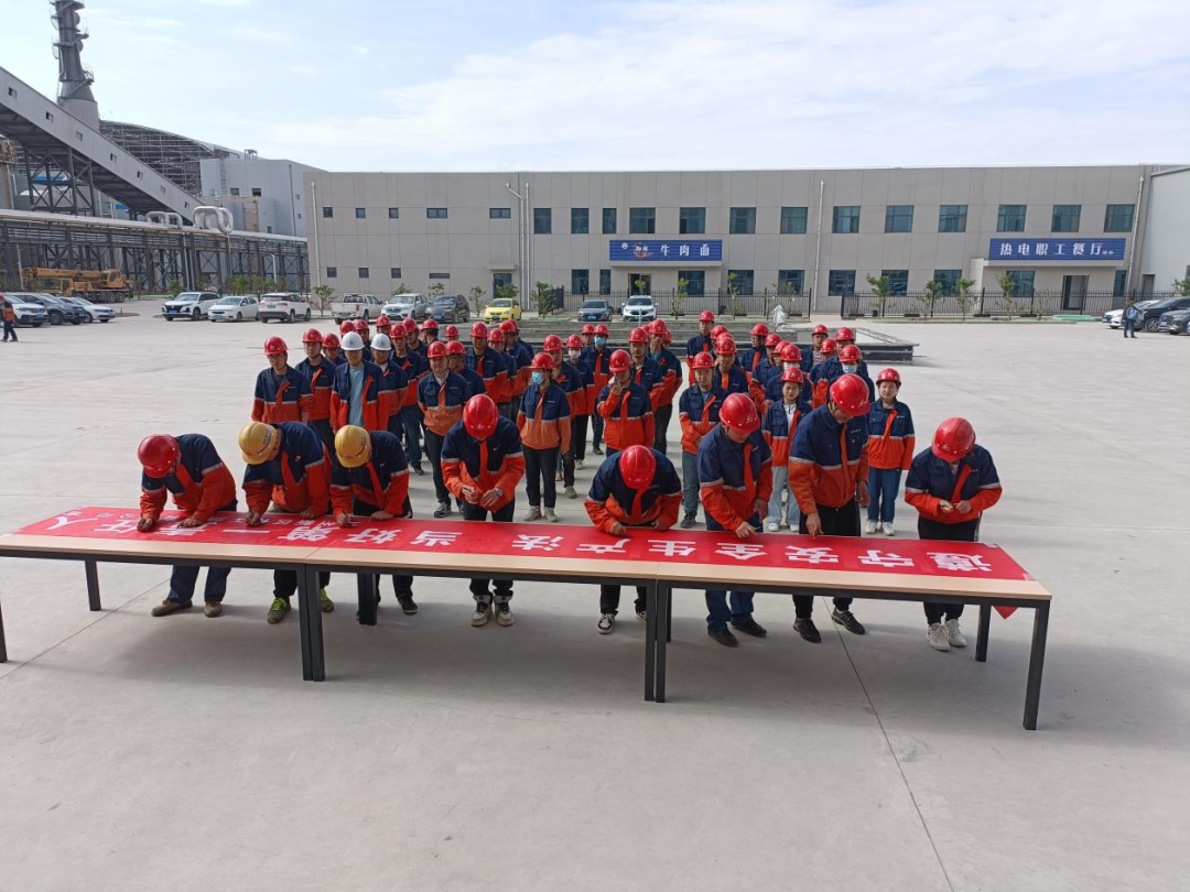 6月2日上午,化工热电公司举行2022年“安全生产月”活动启动仪式,组织职工在“遵守安全生产法,当好第一责任人”条幅上庄严写下了自己的承诺,全面拉开了安全生产月活动序幕。