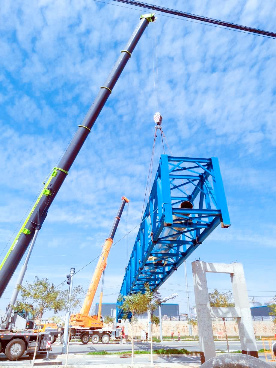 此次热力管廊桁架吊装顺利完成,为东扩区入园企业按期蒸汽供应奠定了基础,同时将保证专精特新化工产业孵化基地C区入驻企业调试及试生产期间的蒸汽需求。