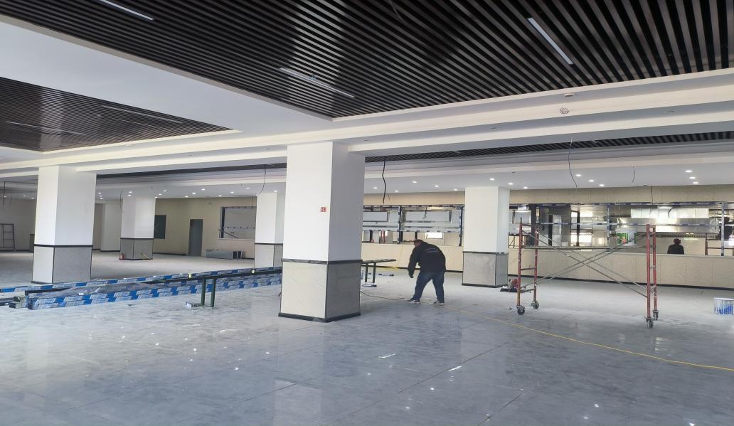 截至目前,已经完成辅助楼装饰装修分部工程中的地面地砖、后厨及卫生间墙砖、内墙抹灰、室内吊顶、后厨轻质隔墙、门窗安装、饰面施工、灯具安装等子分部工程,施工过程中我方与业主单位保持密切沟通,从实际使用角度出发,对施工中的重点、难点进行技术研讨和技术分析,及时确定施工方案、施工措施,对设计中不合理地方及时出修改建议,在施工过程中采用最优施工方案,使项目竣工后能发挥最大经济效益。